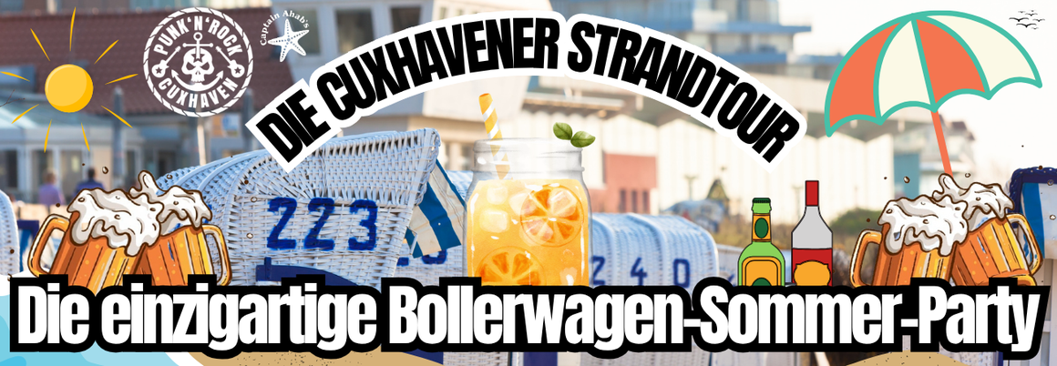 Eigene Getränke und Becher sind während der Strandtour bis zur Ankunft am Captain Ahabs erlaubt und erwünscht. Beim Captain Ahabs bietet dann das dortige Gastro-Team entgeltlich gängige Drinks an. Rucksäcke oder eigene Bollerwagen sind ebenfalls erlaubt. Wer trotz Ticket nicht mitlaufen kann oder möchte, kommt bitte um 19:30 Uhr zur Party-Location.